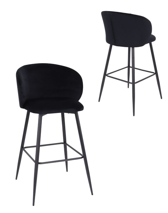 Scaunul de bar Ganta Black de culoare neagră, cu picioare negre, are un șezut spațios și un spătar încăpător, ceea ce îi conferă un grad ridicat de confort pentru a te relaxa în timp ce iei masa.