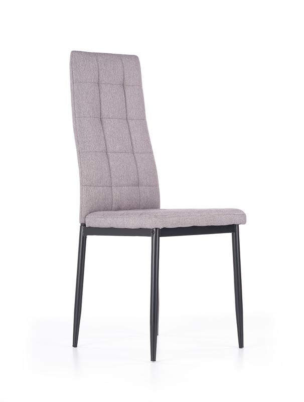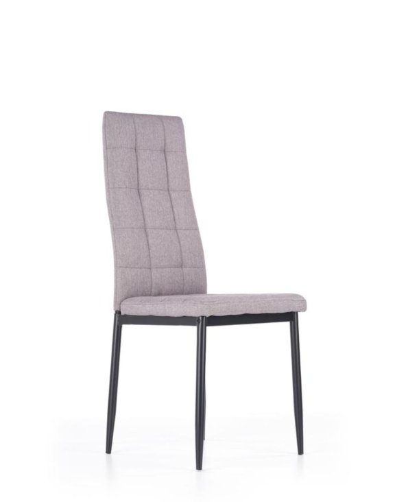 Scaunul K292 are un spătar înalt, turnat și un scaun tapițat în culoarea cenușie.