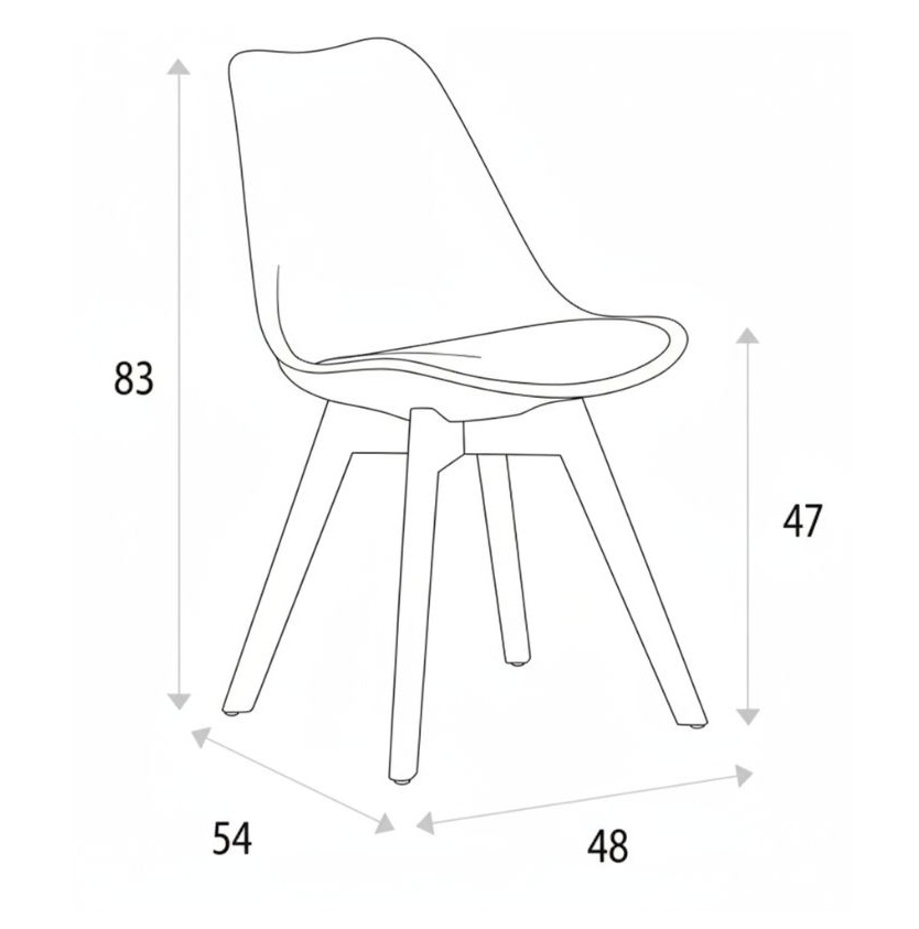 Partea superioară a scaunului este susținută de patru picioare înclinate din lemn de fag.