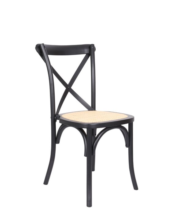 Acest scaun de dining se distinge prin lemnul negru, tratat special.