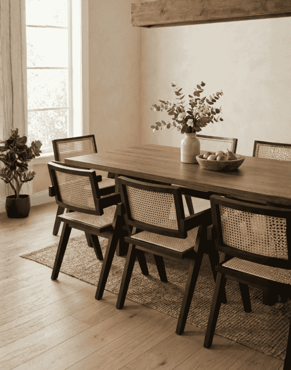 Scaunul din lemn Stella Dark cu ratan, de la Avida Design, este o piesă de mobilier elegantă, în stil retro, perfectă pentru bucătărie, living, cafenele sau restaurante.