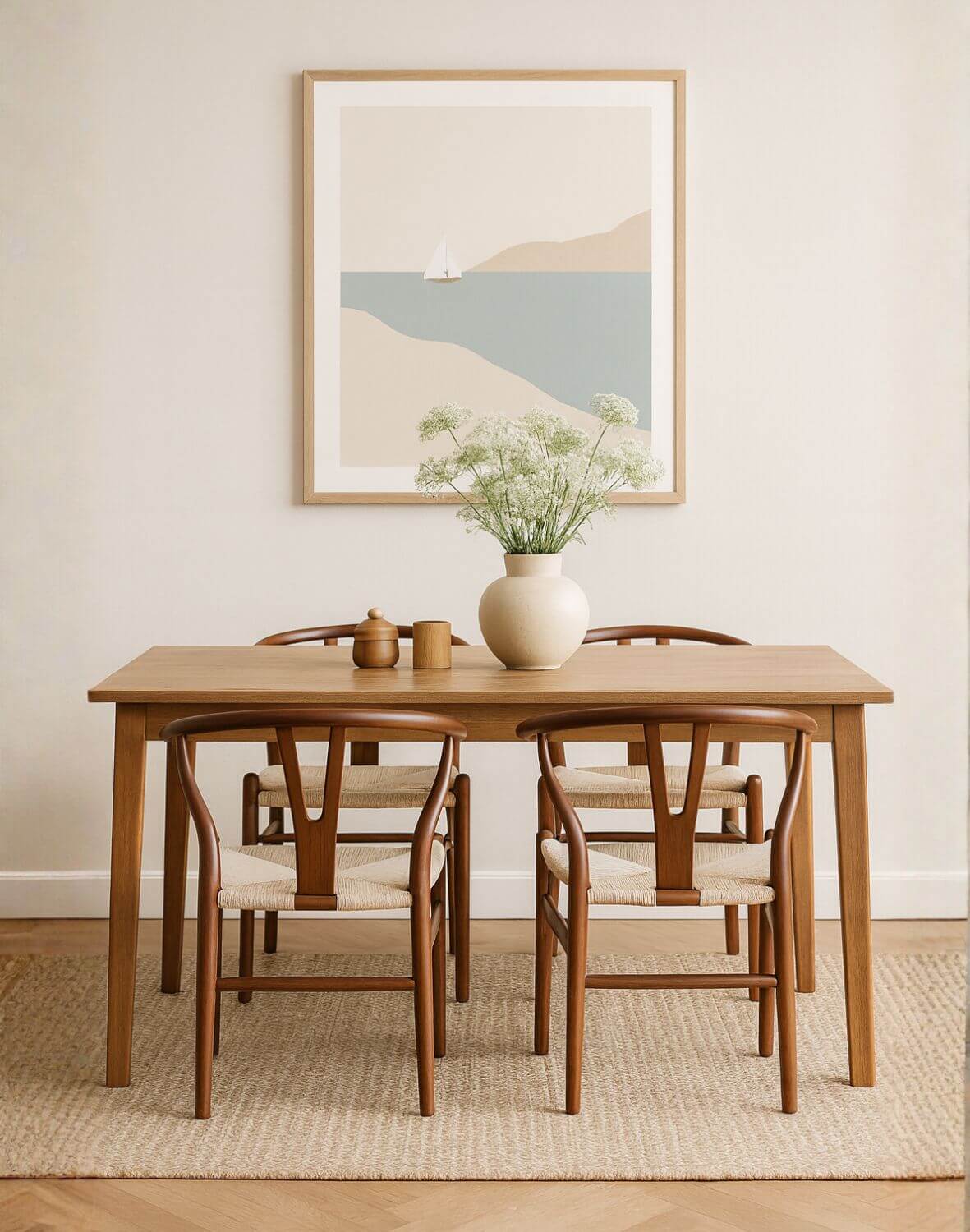 Designul său amintește de popularul scaun Wishbone, fabricat neîntrerupt din 1950 de Carl Hansen & Søn, ceea ce îi sporește unicitatea și îl face o alegere ideală pentru cei care apreciază atât designul modern, cât și execuția solidă tradițională. Este una dintre cele mai consacrate lucrări ale maestrului designer Hans J. Wegner.