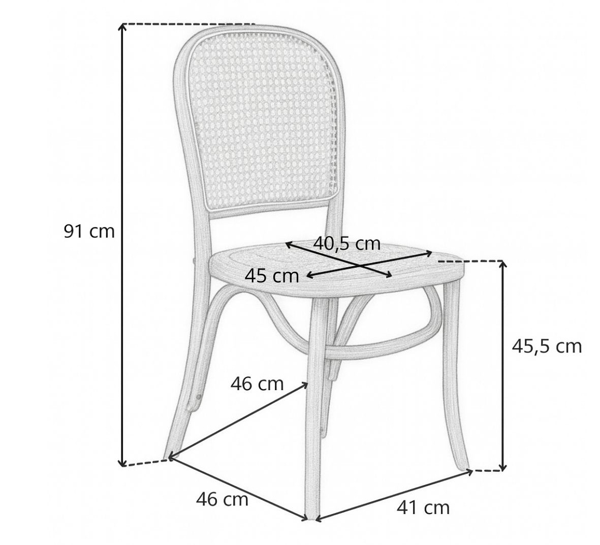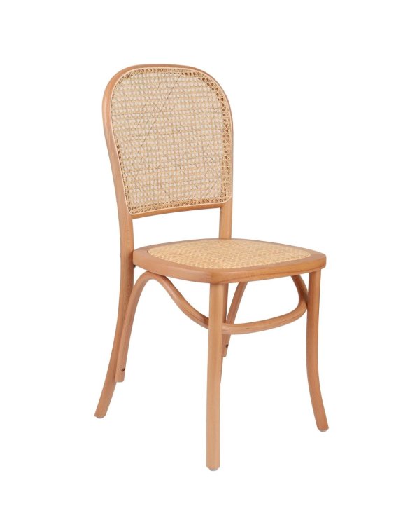 Spătarul, realizat prin metoda împletiturii vieneze, îi conferă scaunului o greutate redusă și o textură plăcută, ceea ce face ca această piesă de mobilier să se potrivească perfect cu diverse stiluri de amenajări interioare.