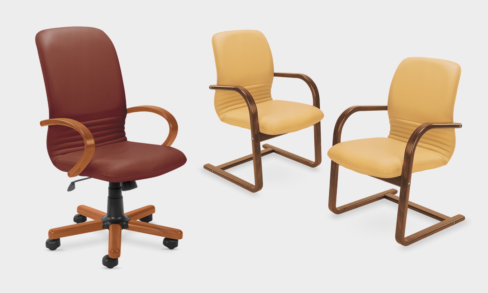 Șezutul și spătarul pot fi tapițate în trei tipuri de piele (două tipuri de piele naturală și unul de piele artificială), disponibile într-o gamă largă de culori la alegere. Poți descoperi mostre de țesături în secțiunea „Materiale (țesături)” și poți vedea contravaloarea tipurilor de material în lista de prețuri a produsului.