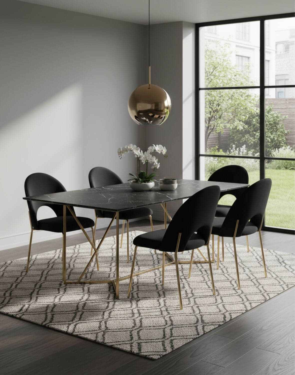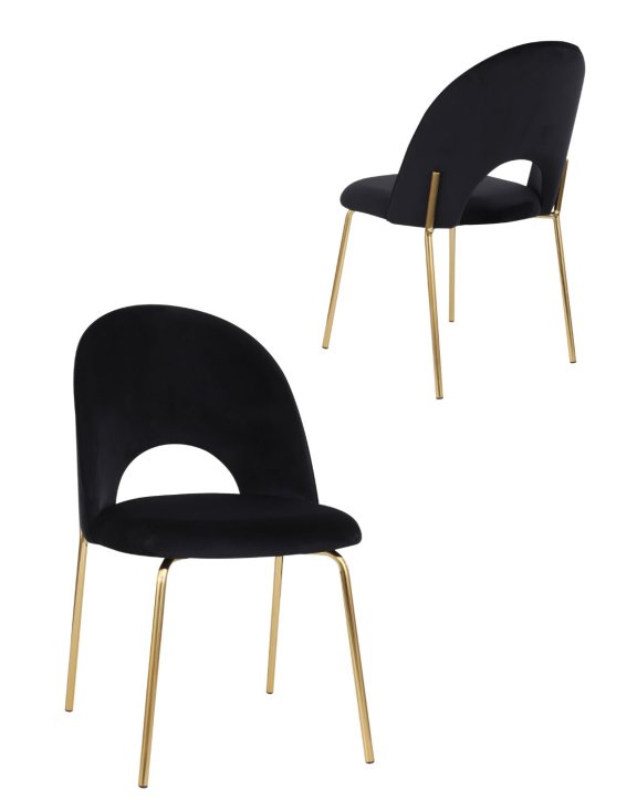 Scaunul de dining Molly Black de culoare negru, cu picioare aurii, tapițerie moale la atingere și forma spătarului modernă, se potrivește prin estetica sa cu cele mai recente tendințe de design interior.