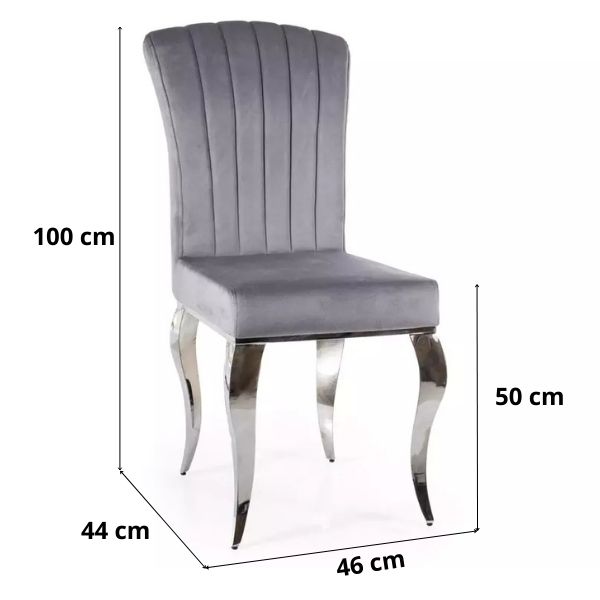 Construcția robustă, cu picioare cromate lucioase, îi asigură stabilitate și durabilitate, conferindu-i în același timp scaunului un aspect exclusivist.