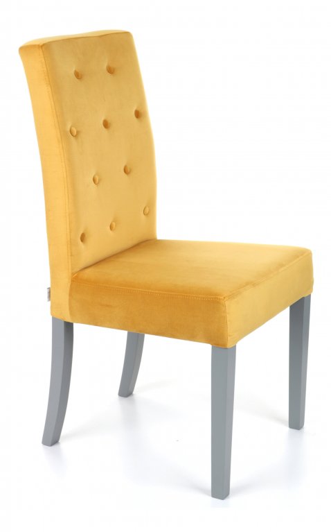 Scaunul are pe spătar 10 nasturi îmbrăcați în material texil.