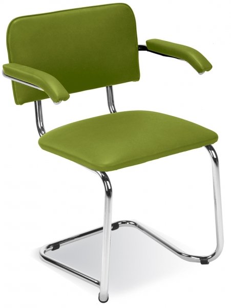 Un scaun de conferință popular, tip cantilever, de calitate recunoscută, cu o construcție din metal lustruit până la culoarea crom.