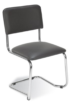 Un scaun de conferință popular, tip cantilever, de calitate recunoscută, cu o construcție din metal lustruit până la culoarea crom.