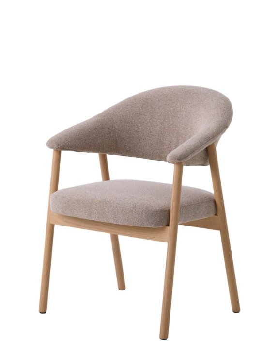 Spătarul și șezutul sunt tapițate cu țesătura premium bej Lake 120, a cărei textură unică a fost obținută prin utilizarea unui fir decorativ de tip bouclé.