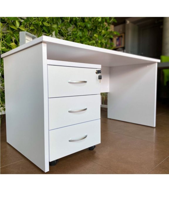 Corpul mobil BP89 alb este dotat cu trei sertare prevăzute cu glisiere cu role, și cu o încuietoare cu cheie ce asigură siguranța obiectelor depozitate.