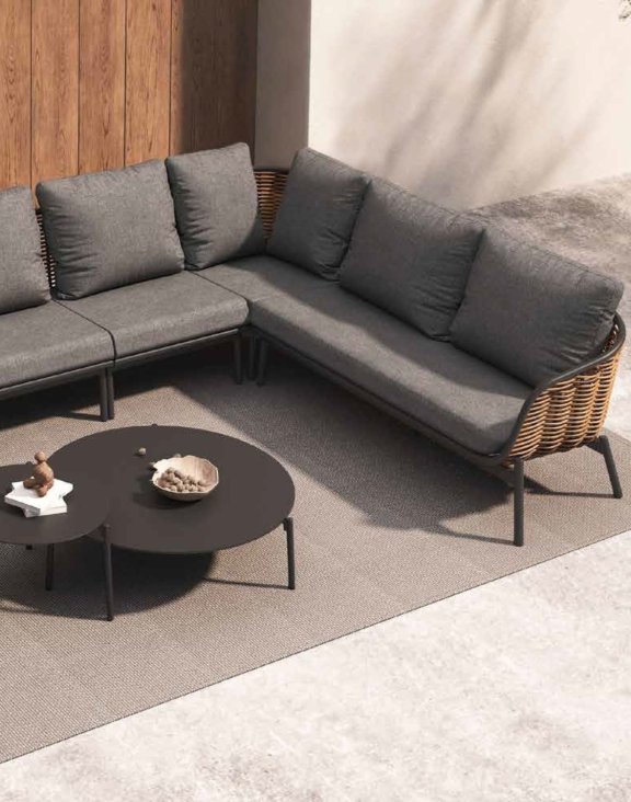 - cadru colțar și măsuțe: ușor și rezistent din aluminiu acoperit cu pulbere de culoare antracit;