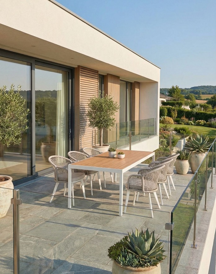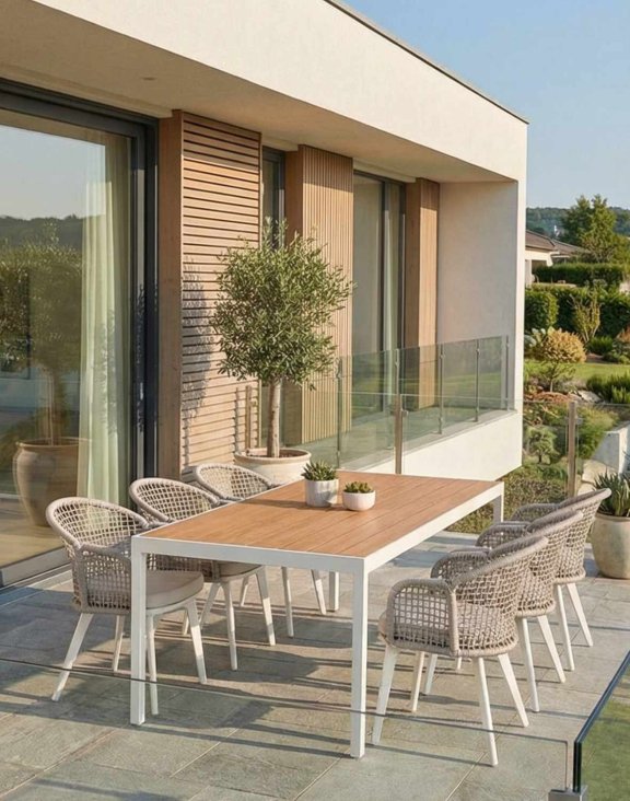 Setul de grădină Atena, compus dintr-o masă de dining și 6 scaune, de la Avida Design, combină aspectul modern cu durabilitatea excepțională.