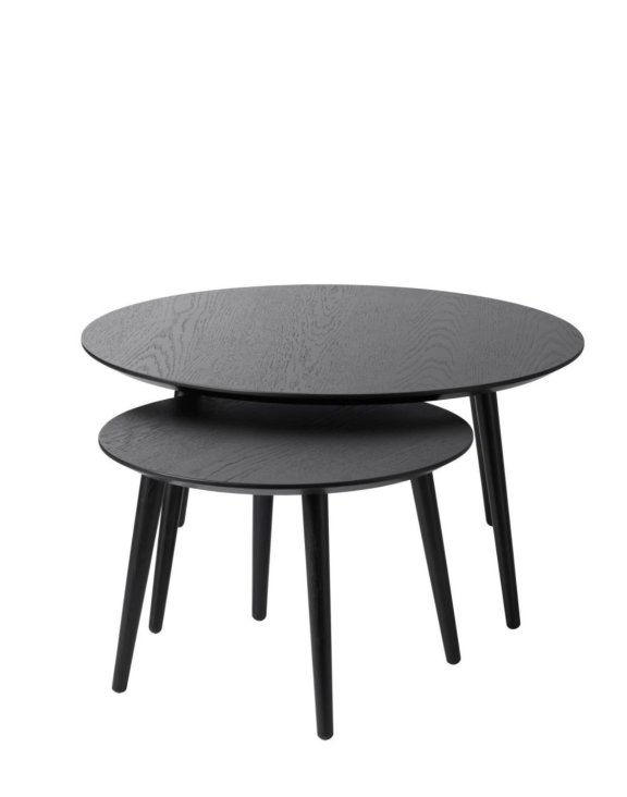 Setul rotund Adda de culoare neagră, de la Unique, constă în două măsuțe de cafea elegante și funcționale, care se vor potrivi perfect în interioarele moderne și scandinave.