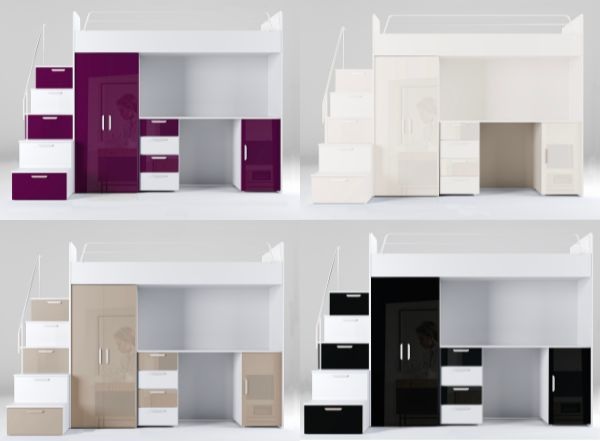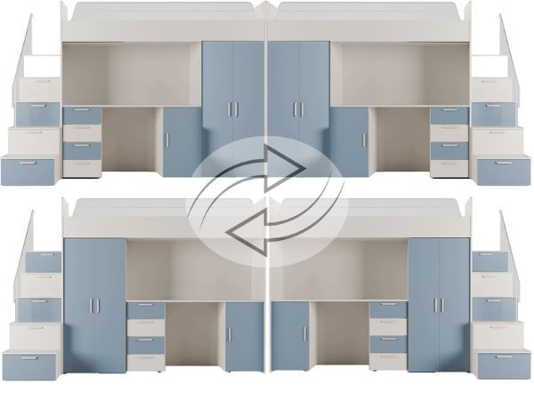 Setul poate fi asamblat astfel încât scările să fie poziționate pe dreapta sau pe stânga (la momentul asamblării, se decide de pe ce parte se va intra în pat).