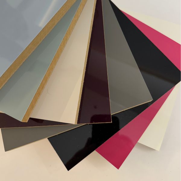 Părțile frontale ale setului sunt realizate din placă MDF lucioasă, oferindu-i eleganță.
