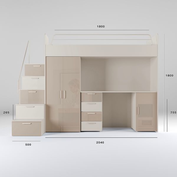 Setul poate fi asamblat astfel încât scările să fie poziționate pe dreapta sau pe stânga (la momentul asamblării, se decide de pe ce parte se va intra în pat).
