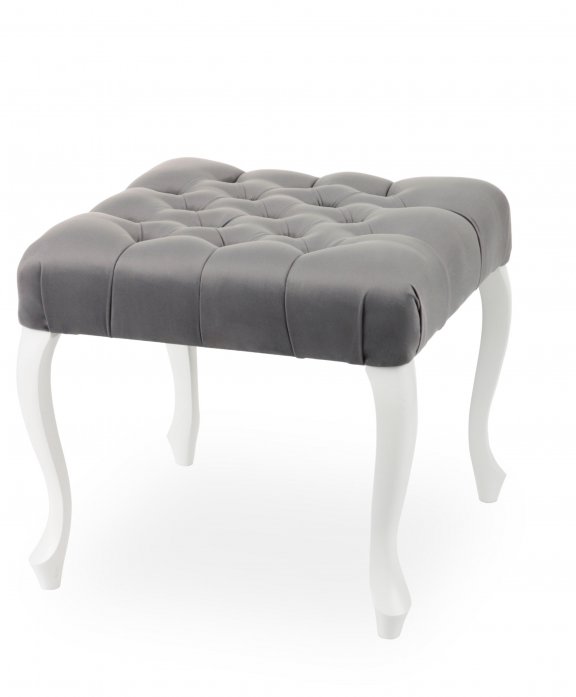 Taburet Louis Chesterfield 50x50, țesătură Prestige 2764, lemn 14. Alb - click
