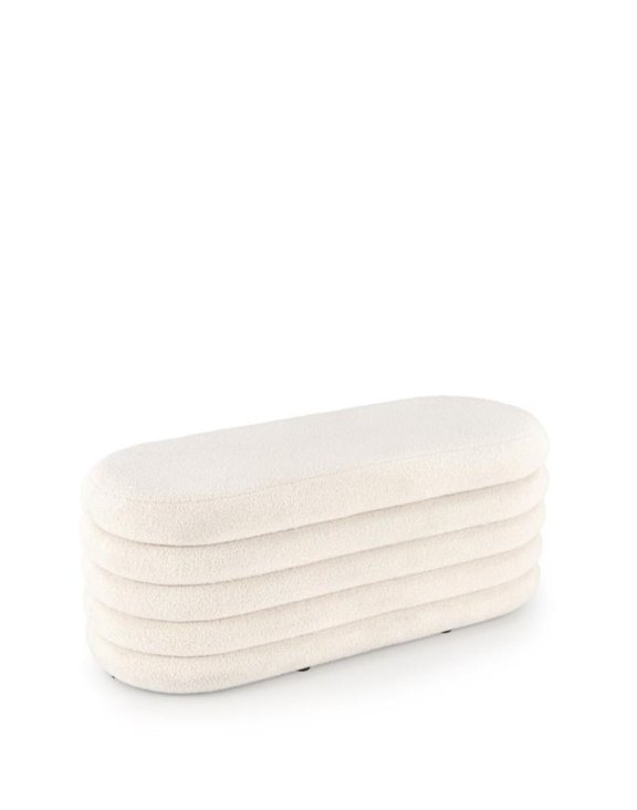 Piesa de mobilier Bliss este tapițată cu material bouclé de înaltă calitate într-o elegantă culoare crem. Această țesătură moale și pufoasă îi conferă un farmec unic și un caracter călduros.