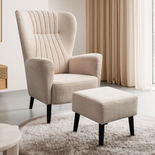 Pentru un set armonios, alege fotoliul Tulle în aceeași țesătură cu taburetul, iar pentru o opțiune mai deosebită, combină-l cu un fotoliu contrastant ca stil și culoare.