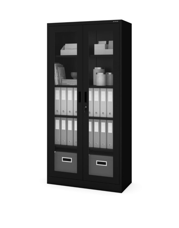 Modelul este dotat cu o încuietoare în 3 puncte, cu câte doua rânduri de chei incluse, și cu 4 rafturi reglabile în trepte de 25 mm. Astfel, vei putea depozita obiecte de dimensiuni mari sau mici.