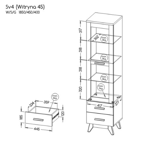 Vitrina îngustă cu ușă și 2 sertare Sven Sv4 de la Dolmar este soluția ideală pentru a valorifica inteligent spațiul din cameră.
