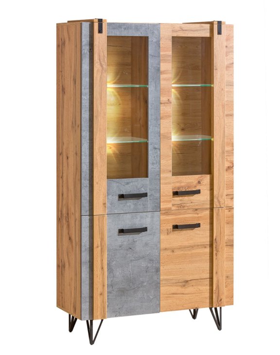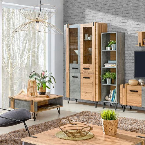 Vitrina Lofter Lo3, în culorile stejar wotan și beton millenium, de la Dolmar, are o estetică industrială rafinată, care va redefini oricare amenajare interioară contemporană.
