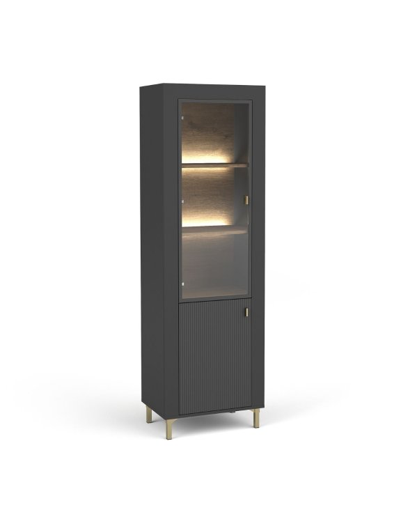 Vitrina este dotată cu un compartiment cu rafturi interioare și cu un geam cu rafturi interioare, oferindu-ți suficient spațiu de depozitare pentru cărți, decorațiuni și alte obiecte.