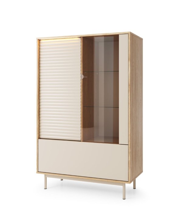 Vitrina Tila de la Dolmar combină armonios diverse tendințe contemporane în materie de design, adăugând un plus de interes vizual în spațiului tău interior.